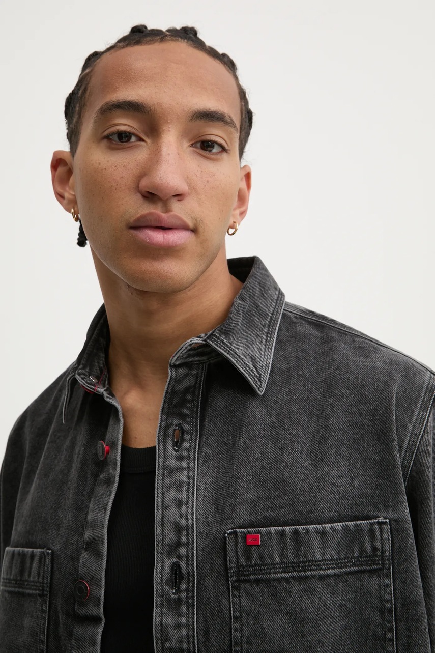 HUGO koszula jeansowa męska kolor szary relaxed z kołnierzykiem klasycznym 50534220