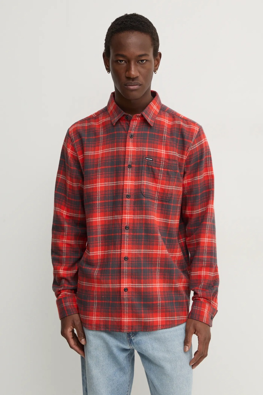 Volcom koszula bawełniana męska kolor czerwony regular z kołnierzykiem klasycznym A0532407