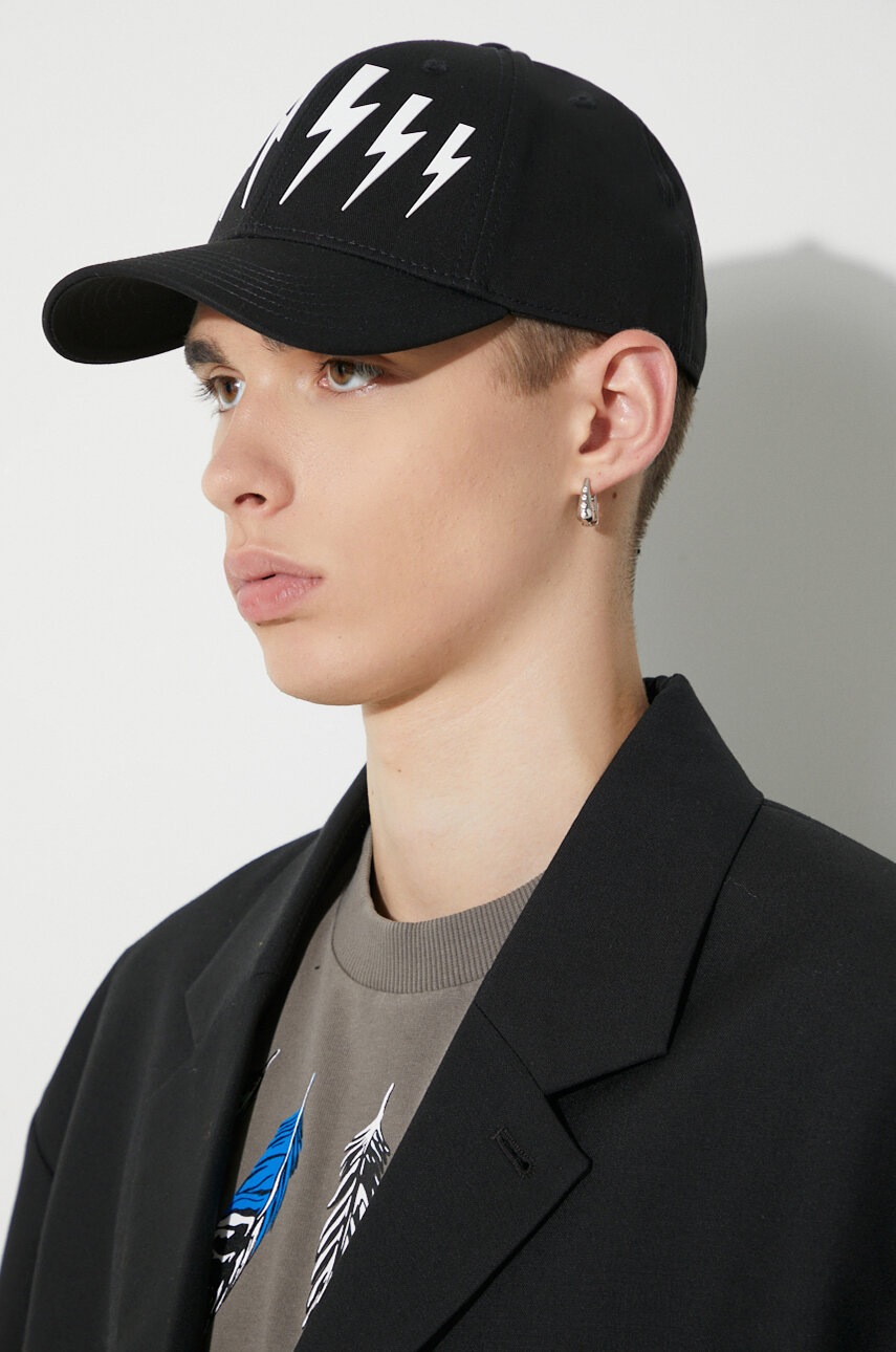 Neil Barett czapka z daszkiem BOLT kolor czarny z aplikacją PBCP320B.C9501.524
