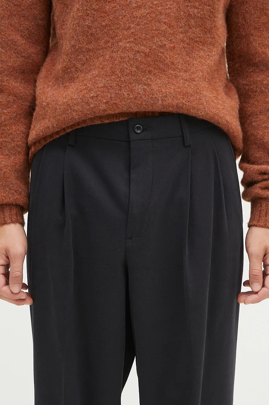 Norse Projects spodnie z domieszką wełny Benn Relaxed Cotton Wool Twill Pleated Trouser kolor czarny w fasonie chinos N25.0395.9999