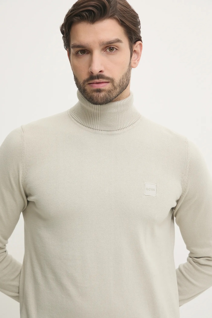 BOSS Orange sweter z domieszką kaszmiru kolor beżowy lekki z golferm 50527573