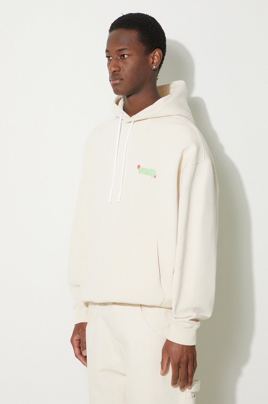 Marcelo Burlon bluza bawełniana Solsticio Comfort Hoodie męska kolor beżowy z kapturem z nadrukiem CMBB106S24FLE0060C50