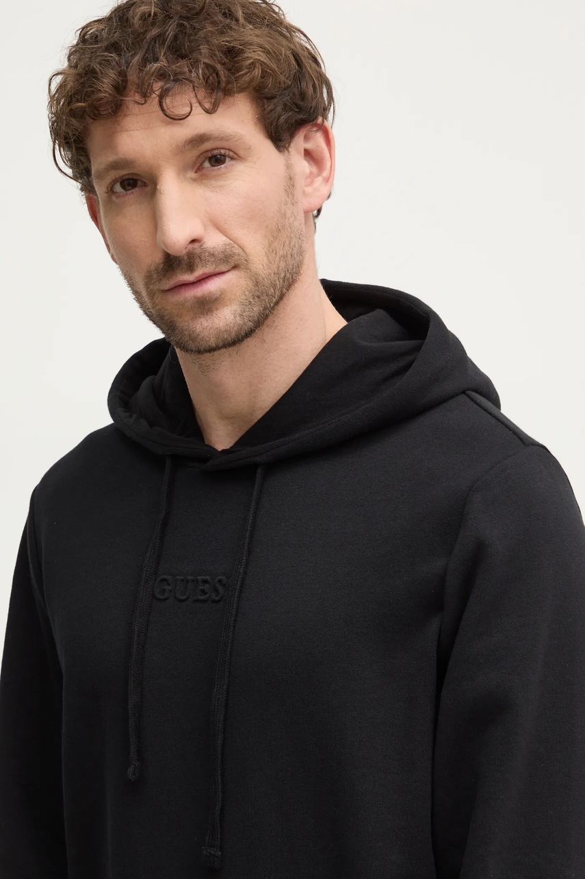 Guess bluza EMBOSSED męska kolor czarny z kapturem gładka M4BQ45 K9YH1
