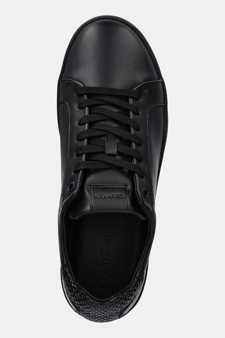 Calvin Klein sneakersy skórzane LOW TOP LACE UP WOVEN kolor czarny HM0HM01767