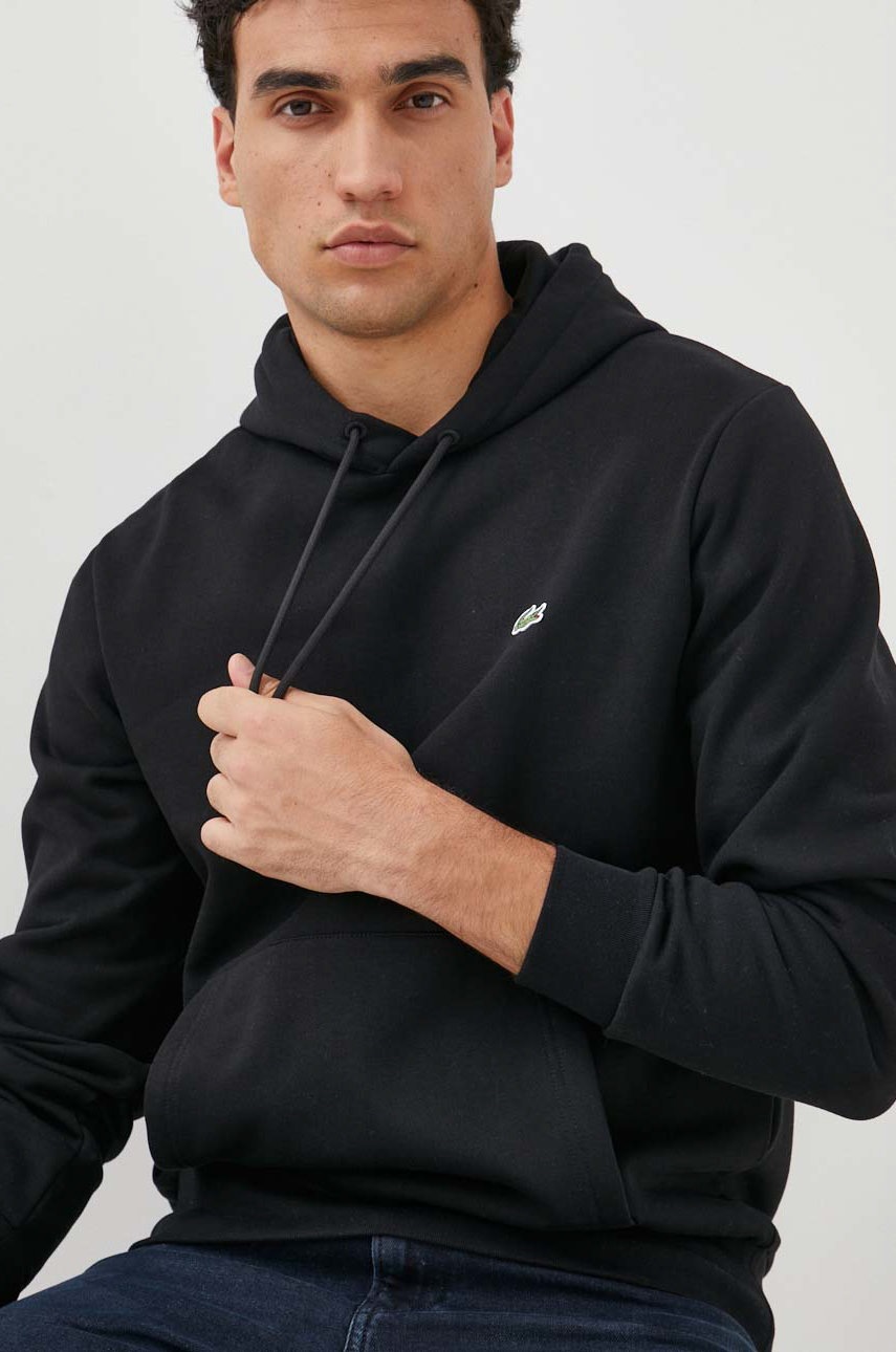 Lacoste bluza kolor czarny z kapturem gładka