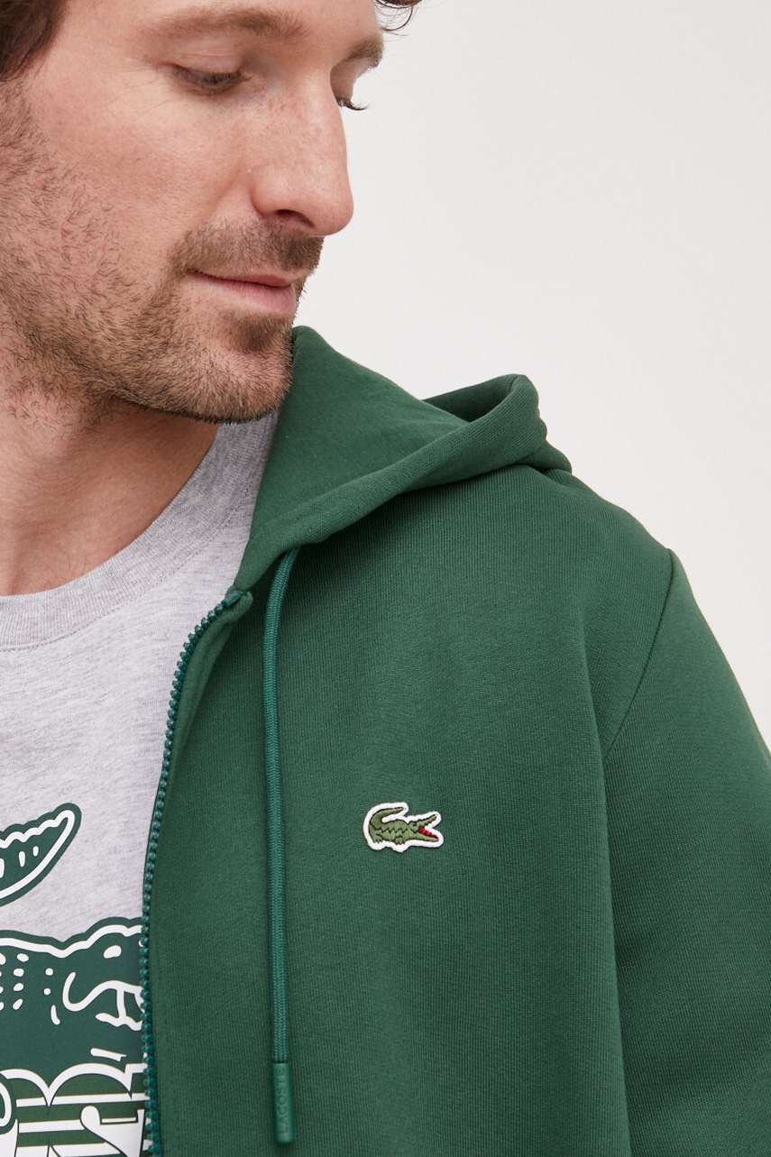 Lacoste bluza męska kolor zielony z kapturem gładka