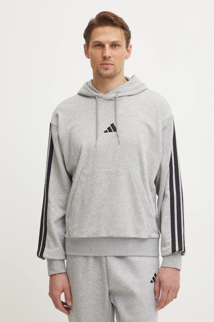 adidas bluza Essentials męska kolor szary z kapturem z aplikacją JD1871