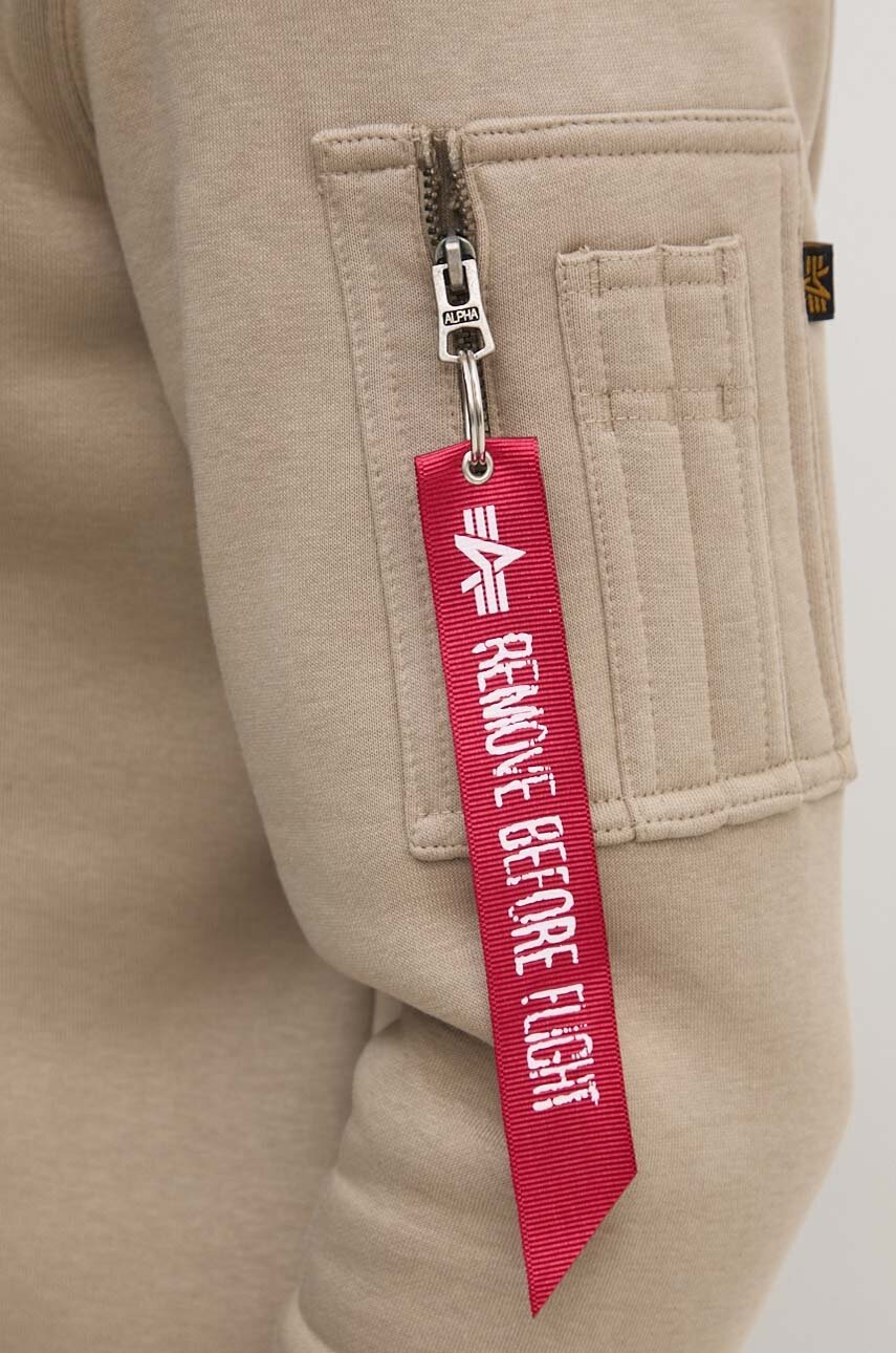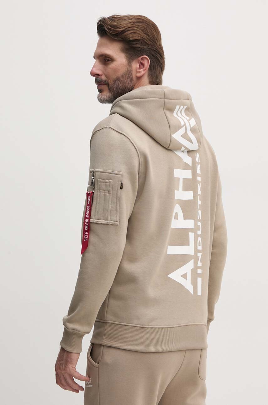 Alpha Industries bluza męska kolor beżowy z kapturem z nadrukiem