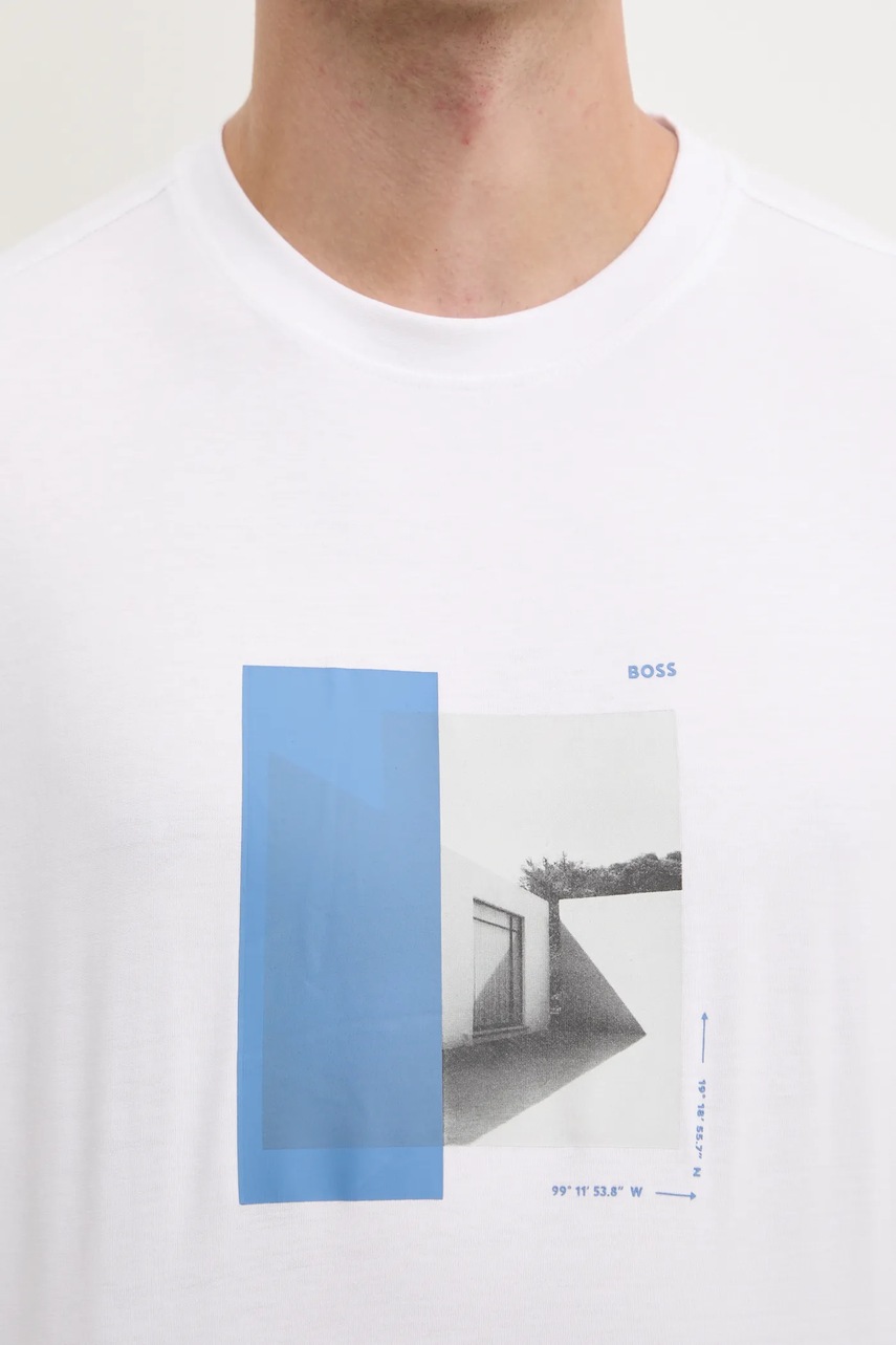 BOSS Orange t-shirt bawełniany męski kolor biały z nadrukiem 50534919