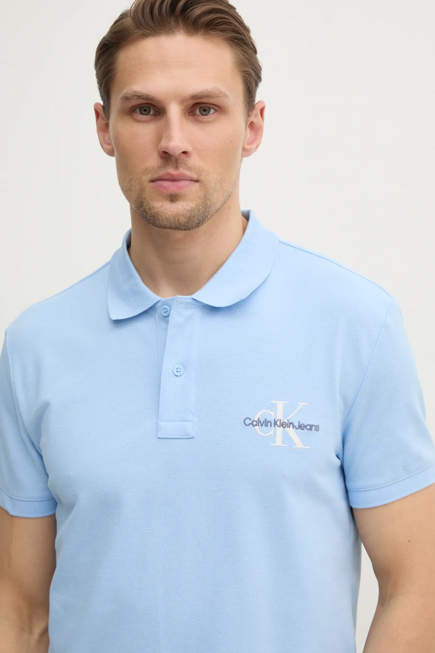 Calvin Klein Jeans polo męski kolor niebieski z aplikacją J30J325664