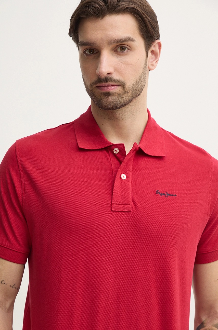 Pepe Jeans polo bawełniane ESSENTIAL POLO CONTRAST LOGO męski kolor czerwony gładki PM542298