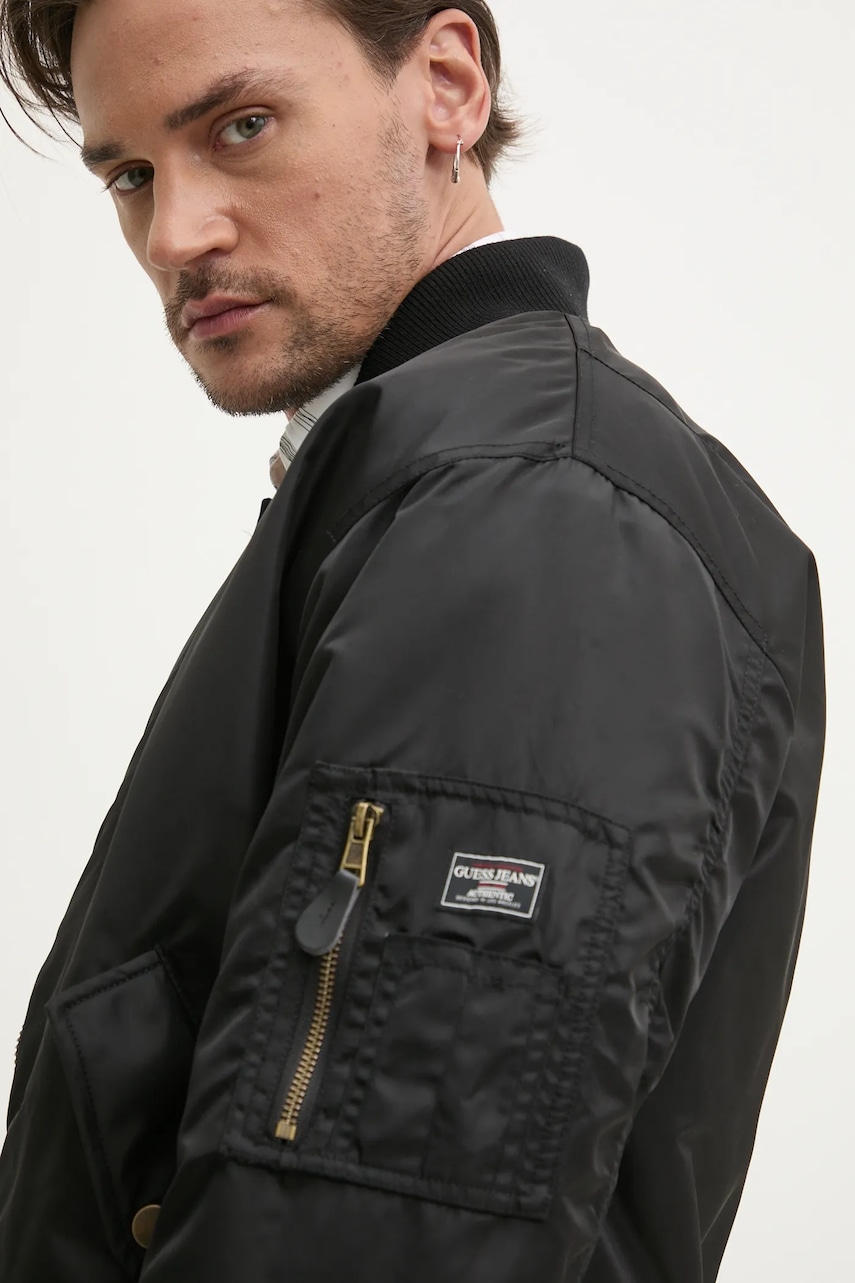Guess Jeans kurtka bomber kolor czarny przejściowa M5RL81 WHAA2