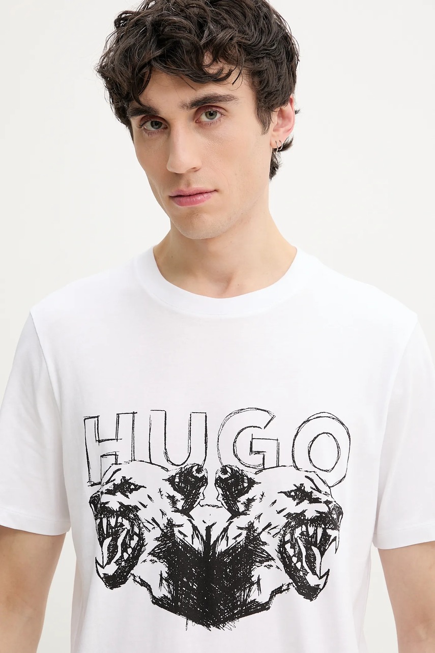 HUGO t-shirt bawełniany męski kolor biały z nadrukiem 50538257