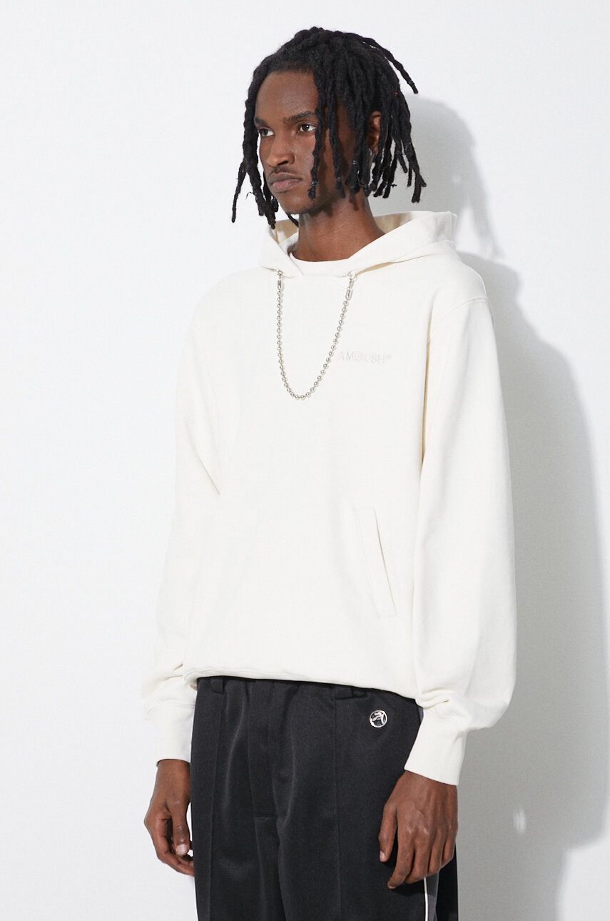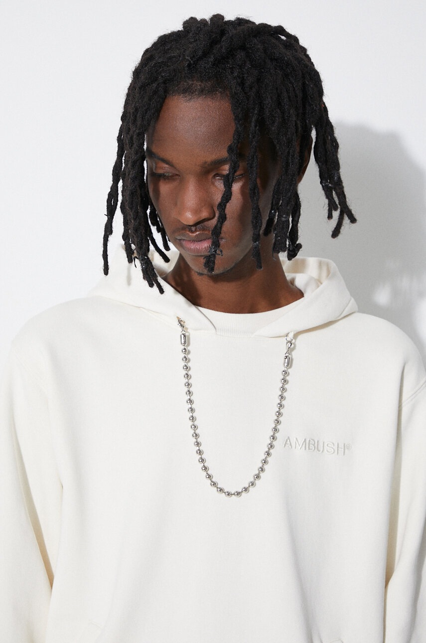AMBUSH bluza bawełniana Ballchain męska kolor beżowy z kapturem z aplikacją BMBB001S24FLE