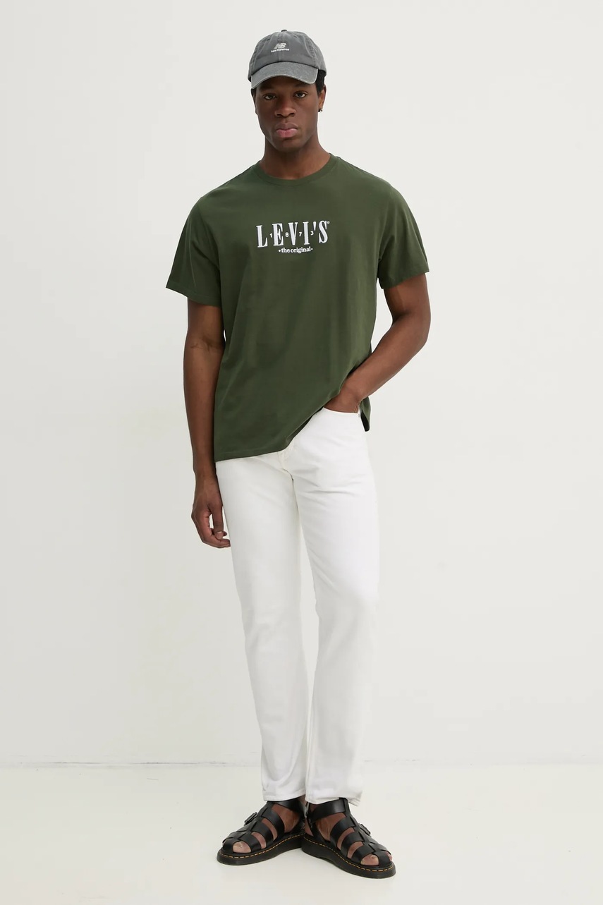 Levi's t-shirt bawełniany SS RELAXED FIT TEE męski kolor zielony z aplikacją 16143