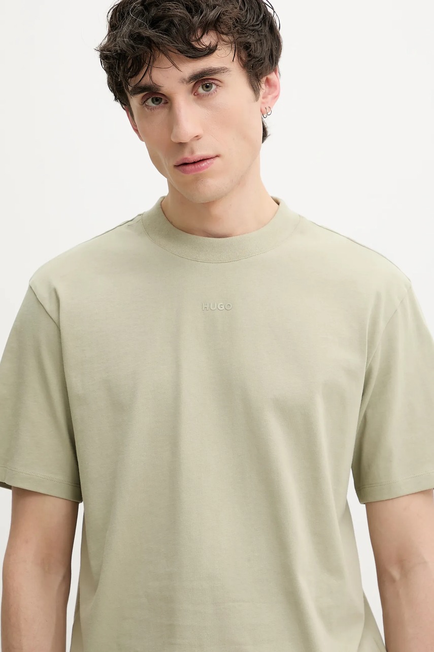 HUGO t-shirt bawełniany męski kolor zielony gładki 50488330