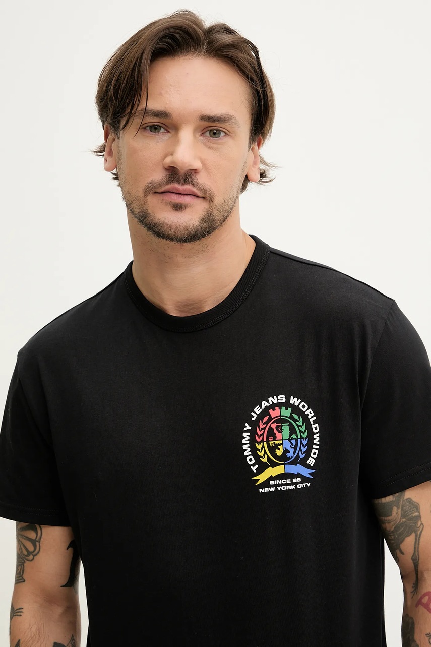 Tommy Jeans t-shirt bawełniany męski kolor czarny z nadrukiem DM0DM20813