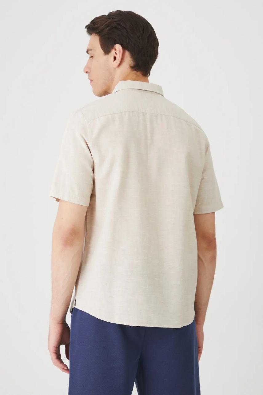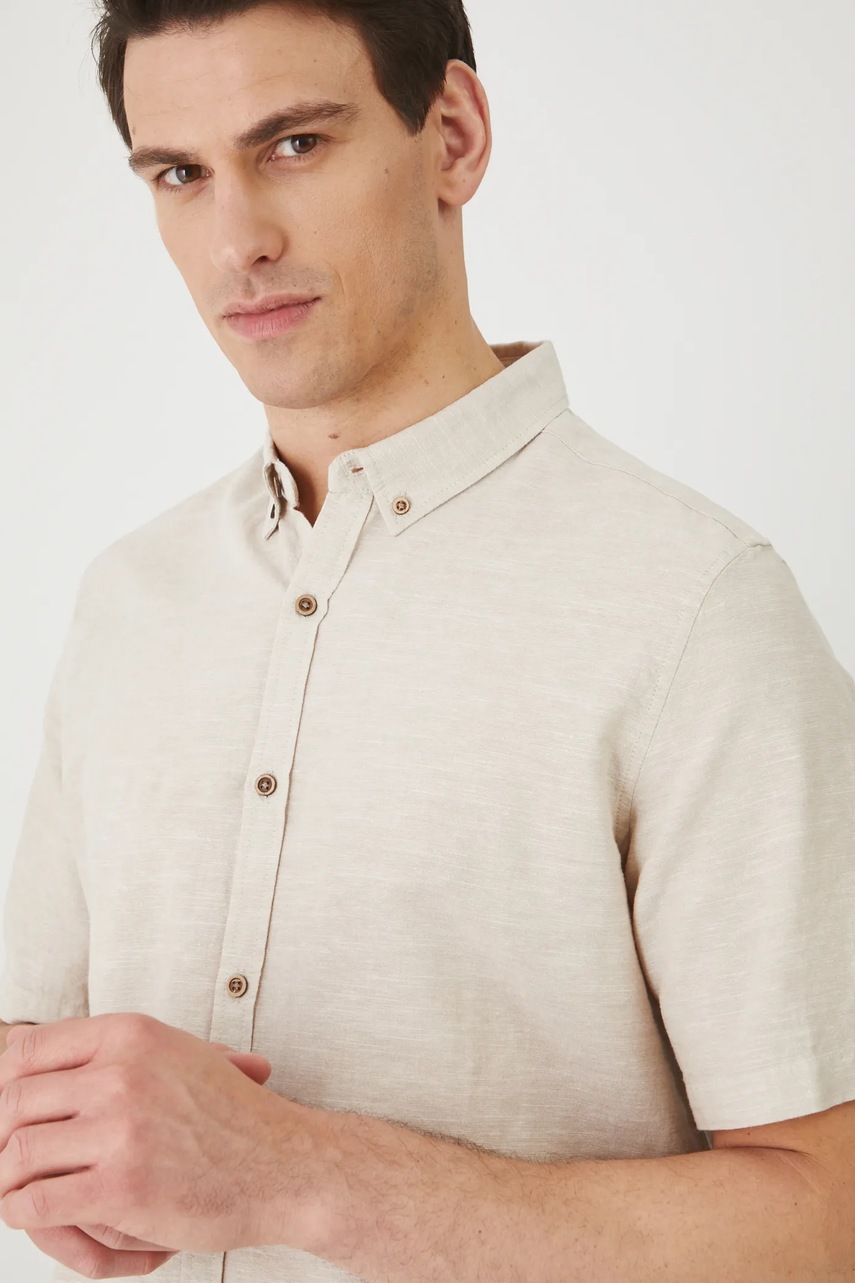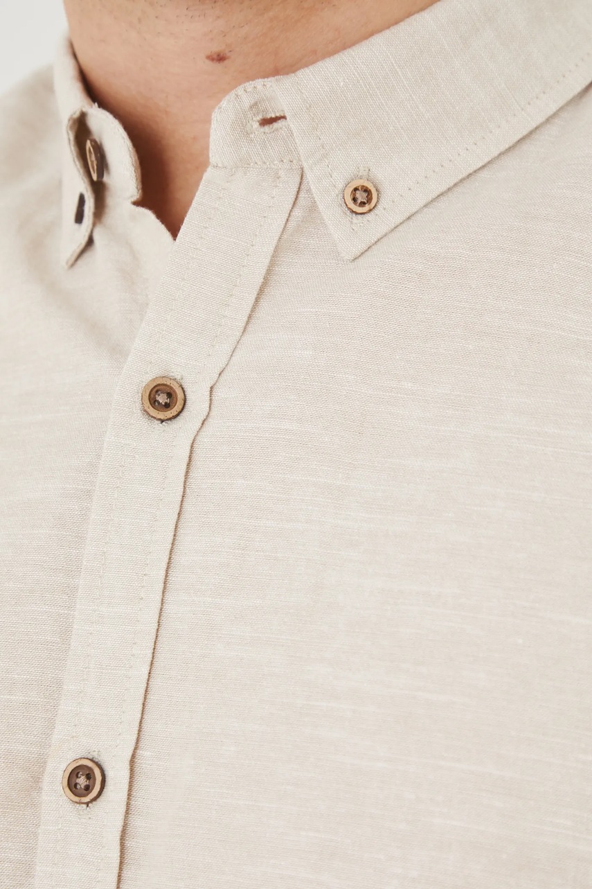 Medicine koszula lniana kolor beżowy regular z kołnierzykiem button-down