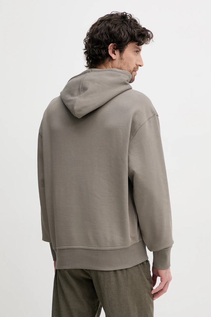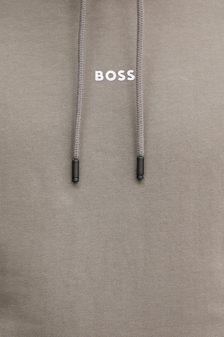 BOSS Orange bluza bawełniana męska kolor brązowy z kapturem z nadrukiem