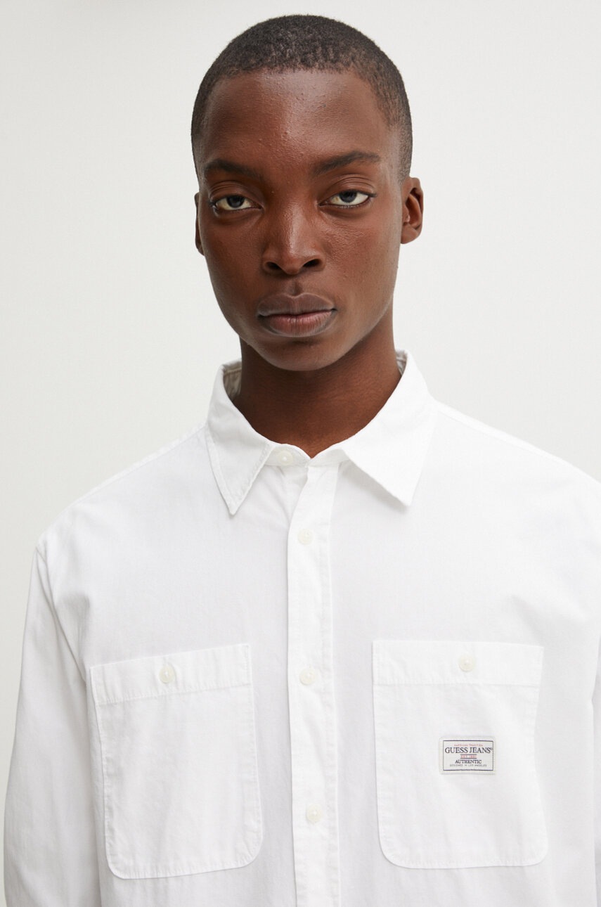 Guess Jeans koszula bawełniana męska kolor biały regular z kołnierzykiem klasycznym M4YH37 WGCF1