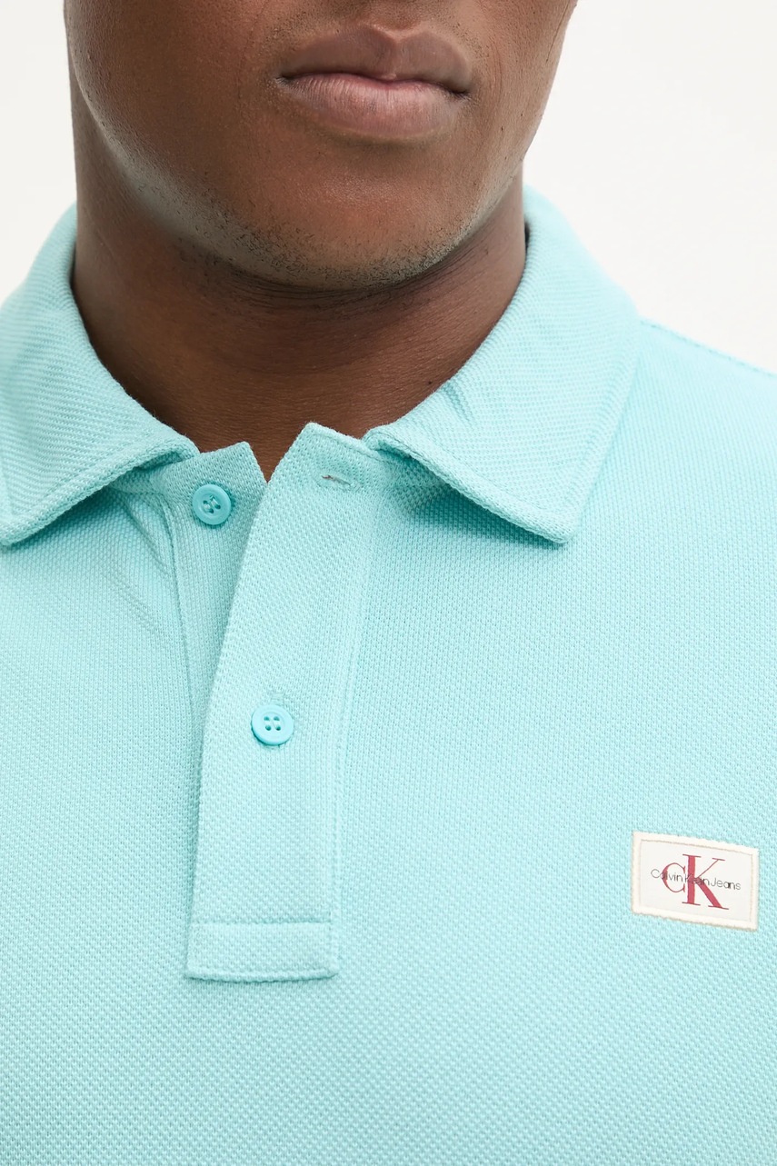 Calvin Klein Jeans polo męski kolor turkusowy gładki J30J327040