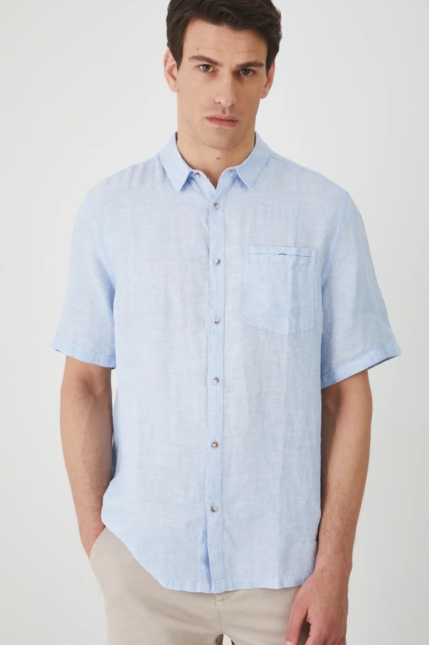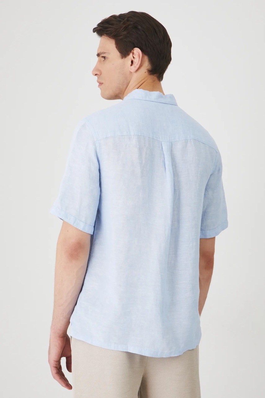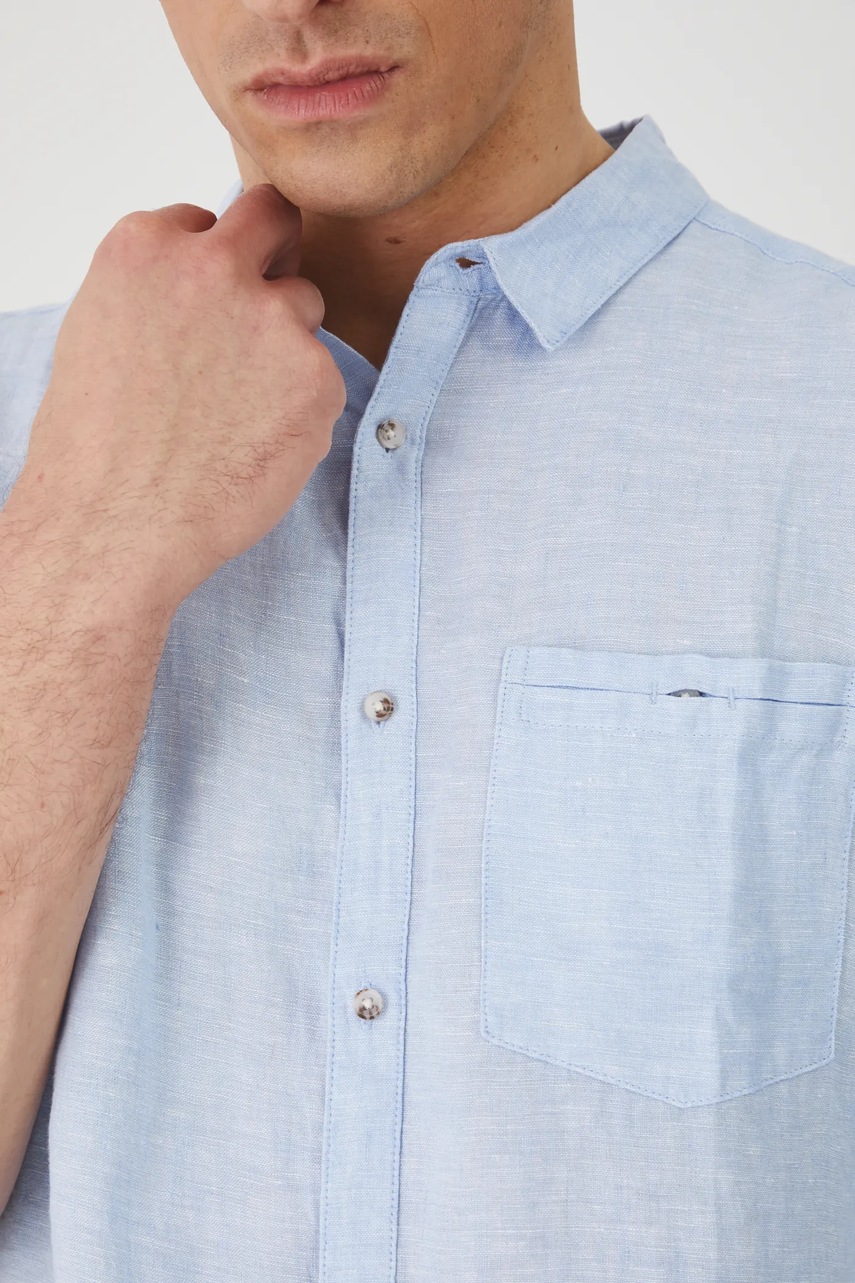 Medicine koszula lniana kolor niebieski regular z kołnierzykiem klasycznym