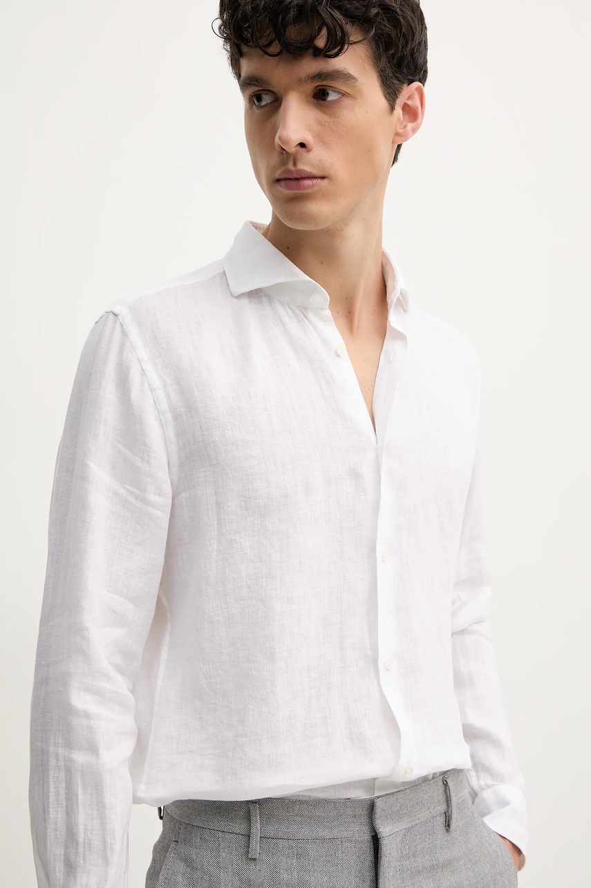 Joop! koszula lniana męska kolor biały slim z kołnierzykiem włoskim 30046075