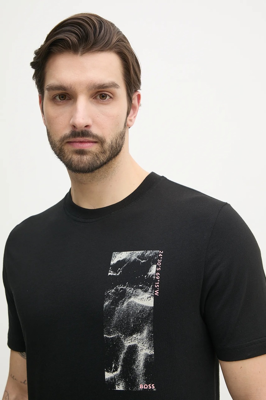 BOSS Orange t-shirt bawełniany męski kolor czarny z nadrukiem 50539179