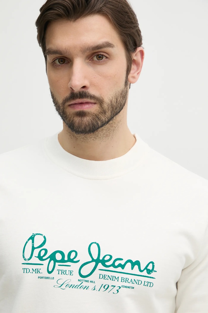 Pepe Jeans bluza bawełniana DUMAS CREW męska kolor biały z nadrukiem PM582832