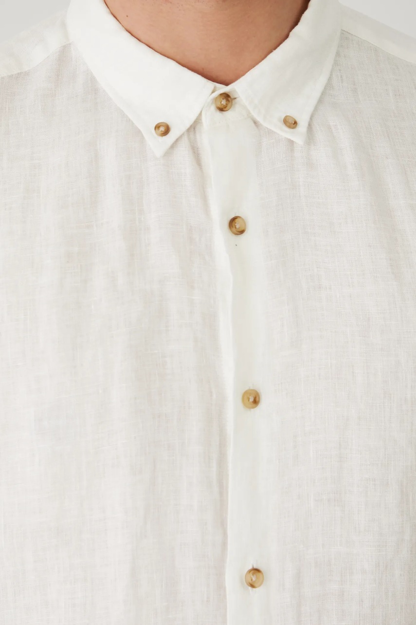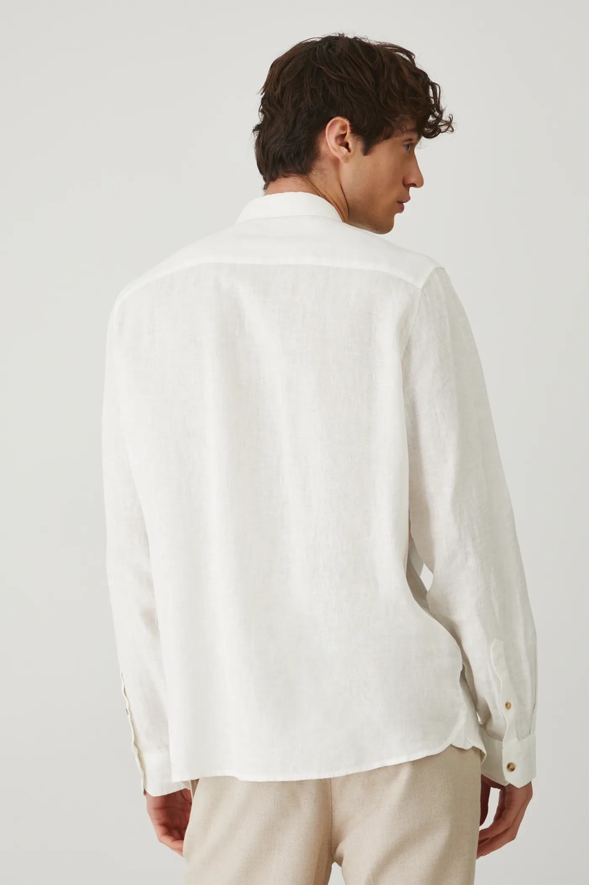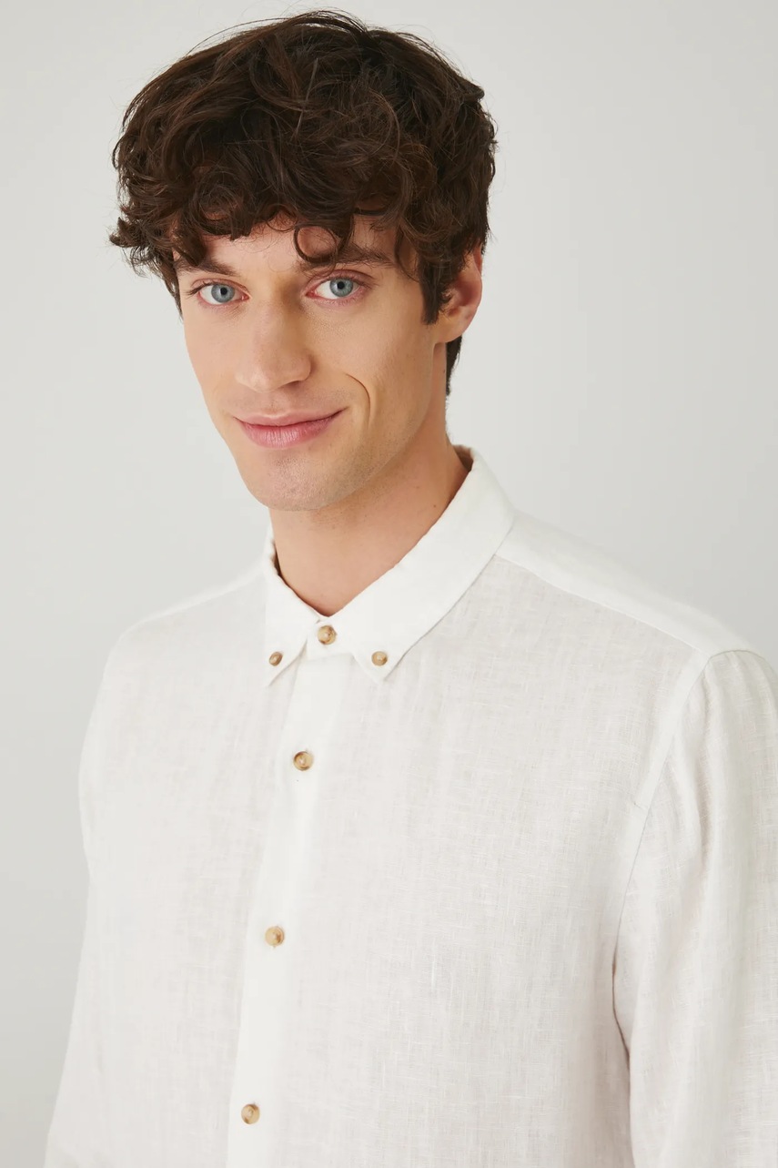 Medicine koszula lniana męska kolor biały regular z kołnierzykiem button-down