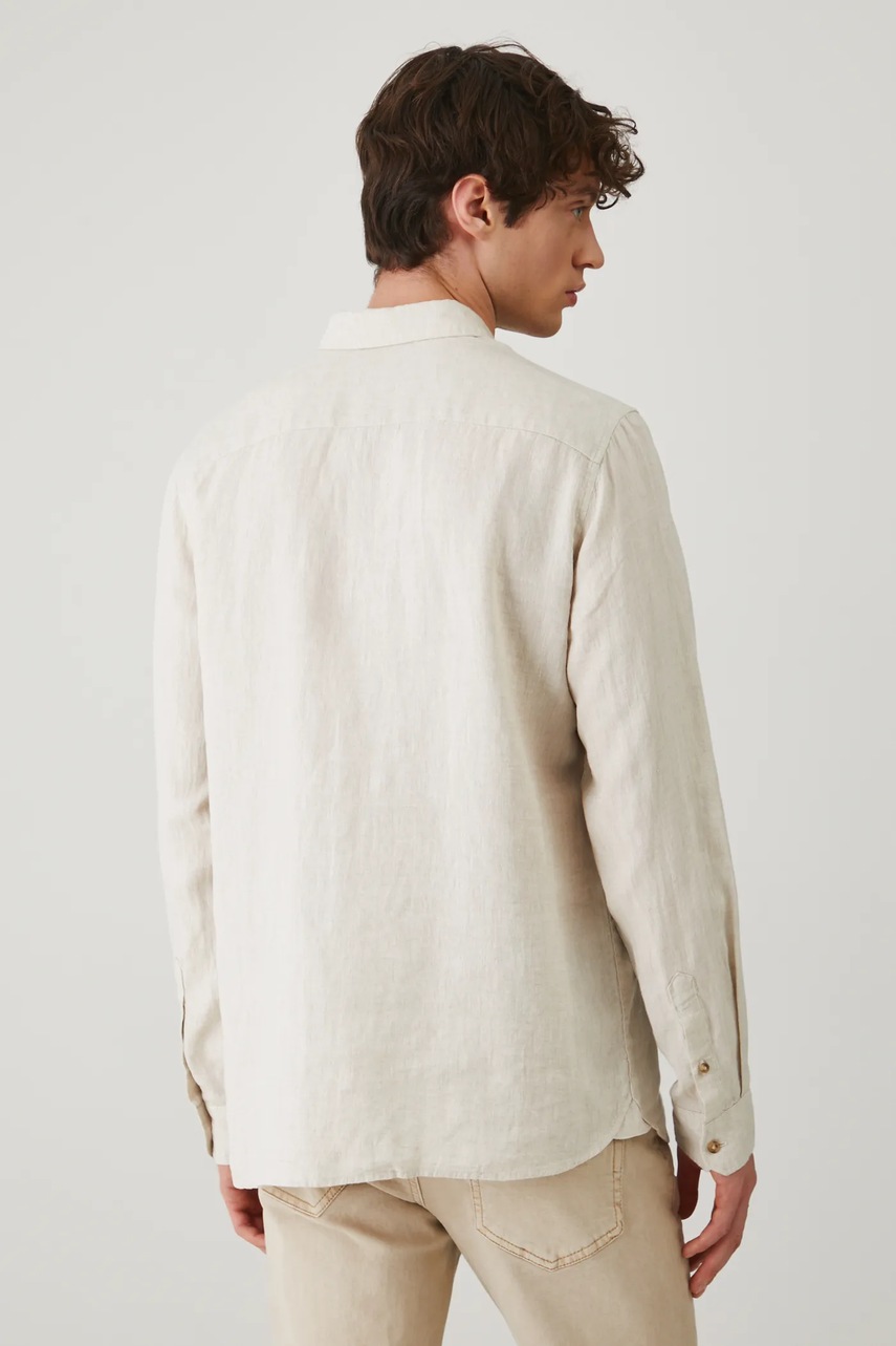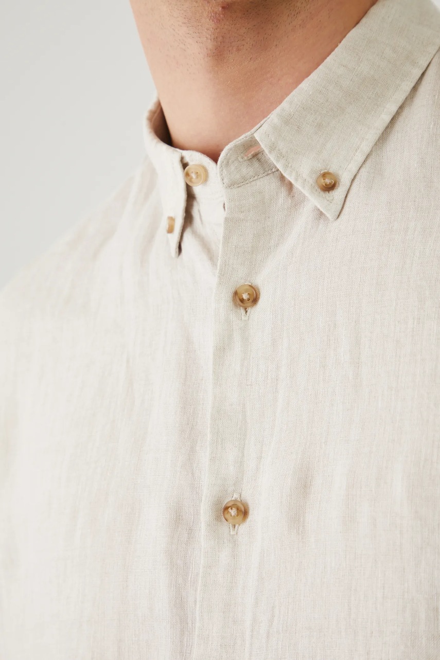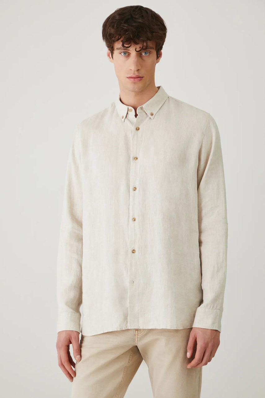 Medicine koszula lniana męska kolor beżowy regular z kołnierzykiem button-down