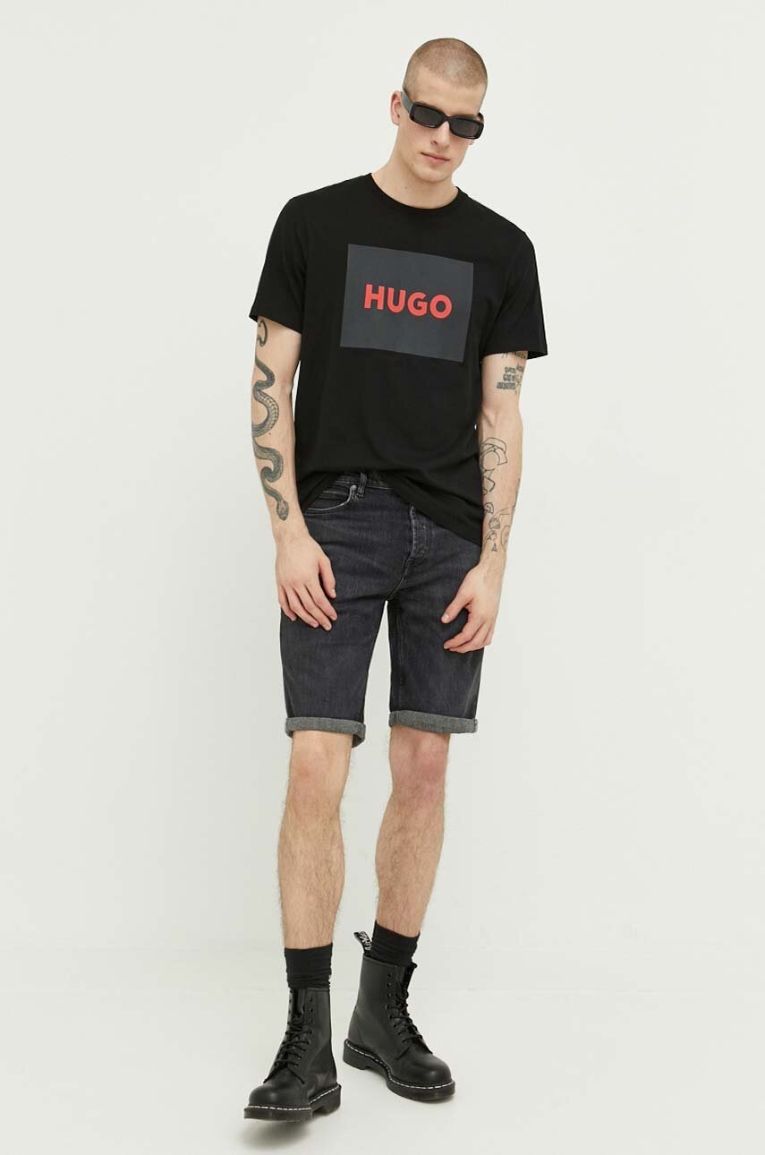 HUGO t-shirt bawełniany kolor czarny z nadrukiem 50467952