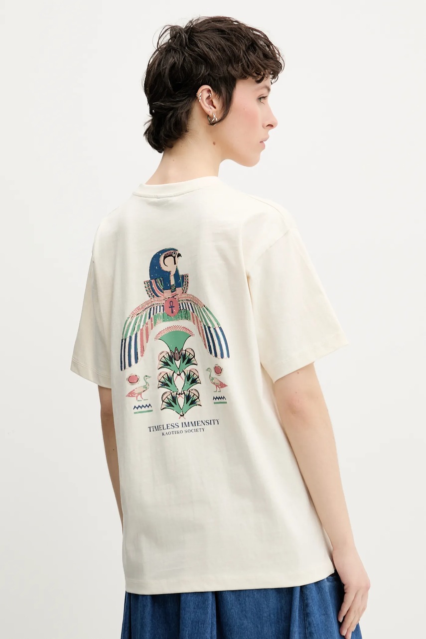 Kaotiko t-shirt bawełniany kolor beżowy z nadrukiem AQ016-01S-G002