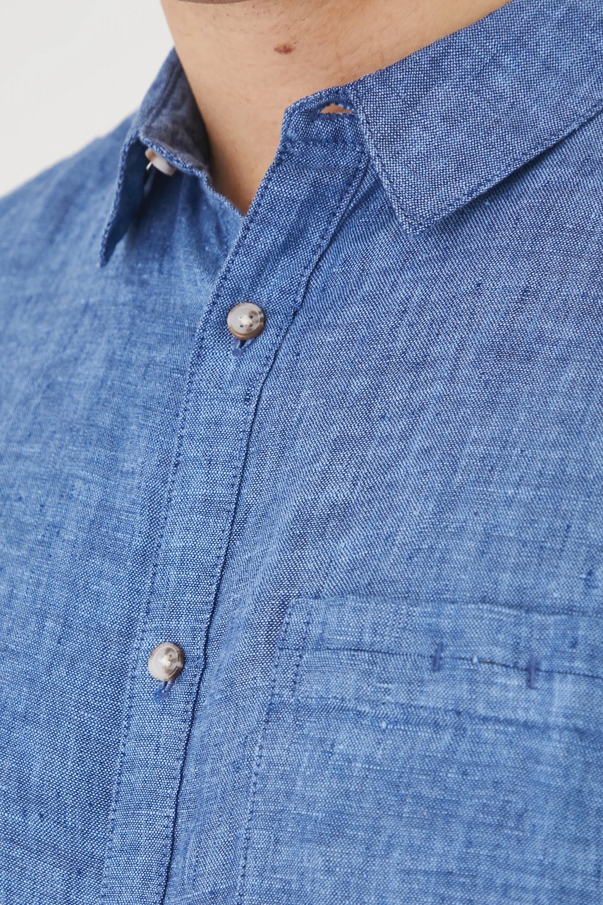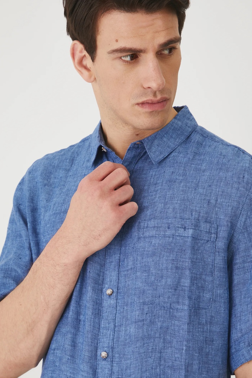 Medicine koszula lniana kolor niebieski regular z kołnierzykiem klasycznym