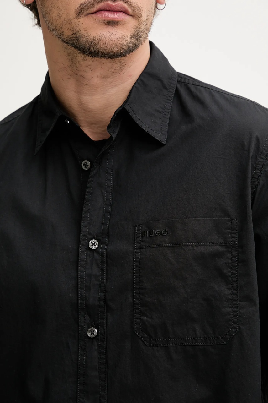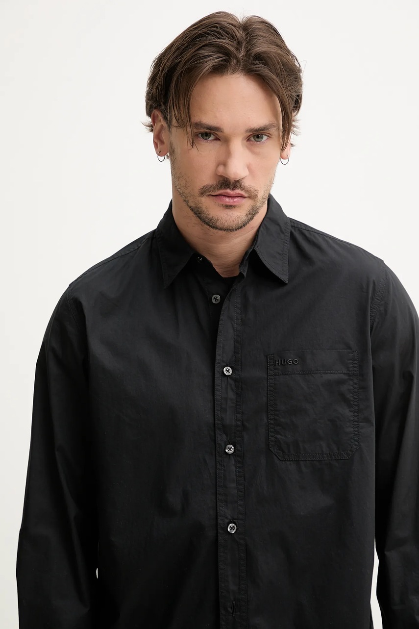 HUGO koszula bawełniana męska kolor czarny regular z kołnierzykiem klasycznym 50539309