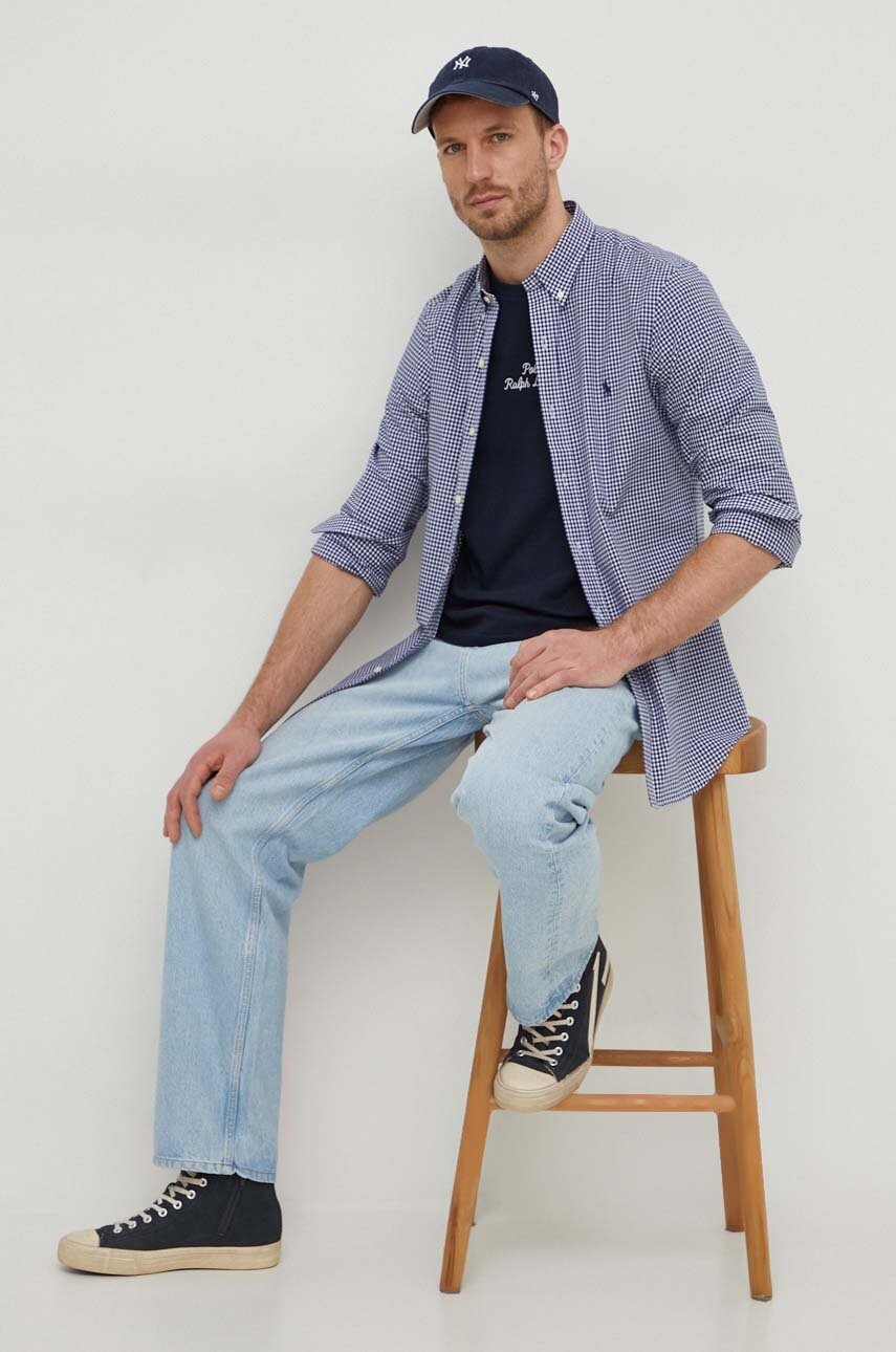 Polo Ralph Lauren t-shirt bawełniany męski kolor granatowy gładki