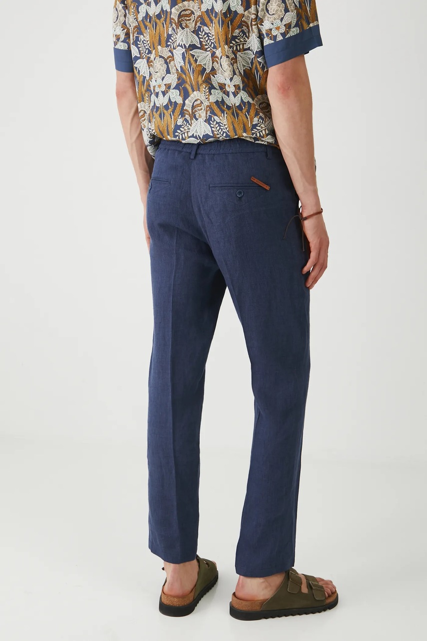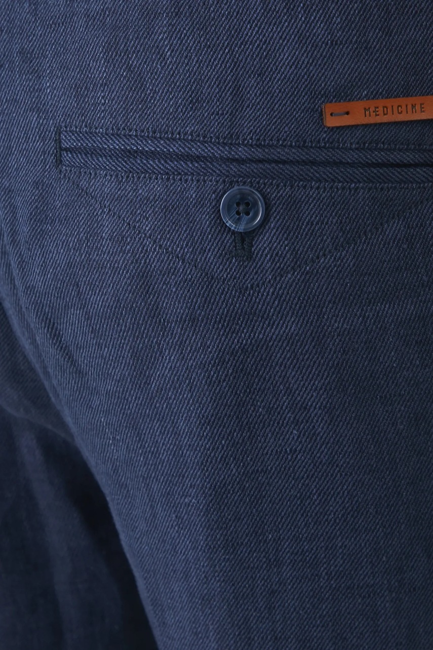 Medicine spodnie lniane męskie kolor granatowy proste