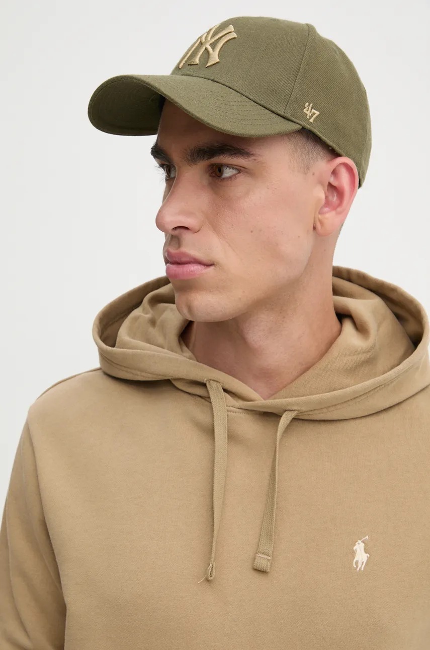Polo Ralph Lauren bluza bawełniana męska kolor beżowy z kapturem gładka 710916690