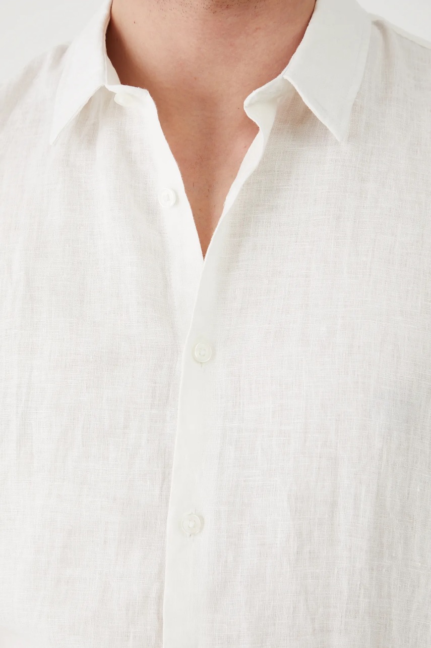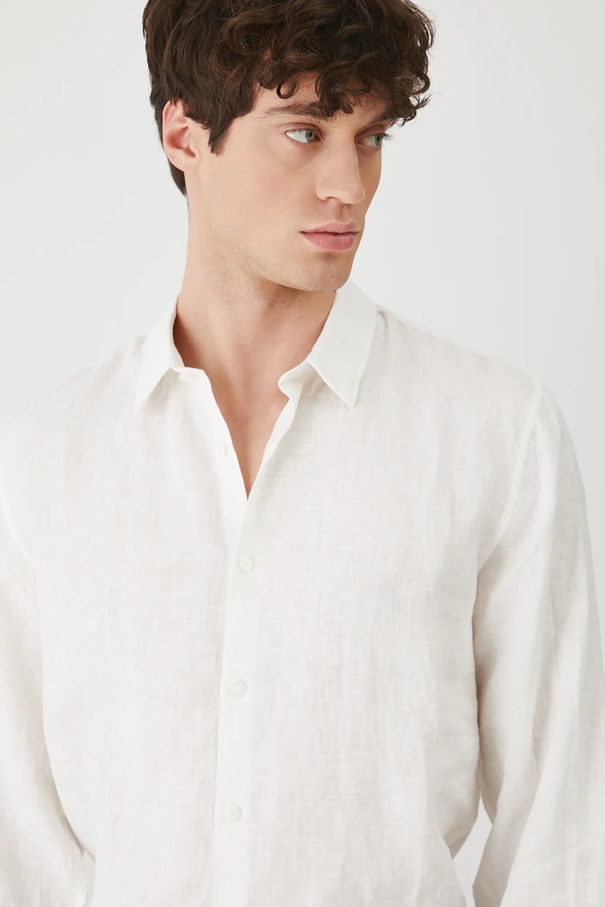 Medicine koszula lniana męska kolor biały slim z kołnierzykiem klasycznym