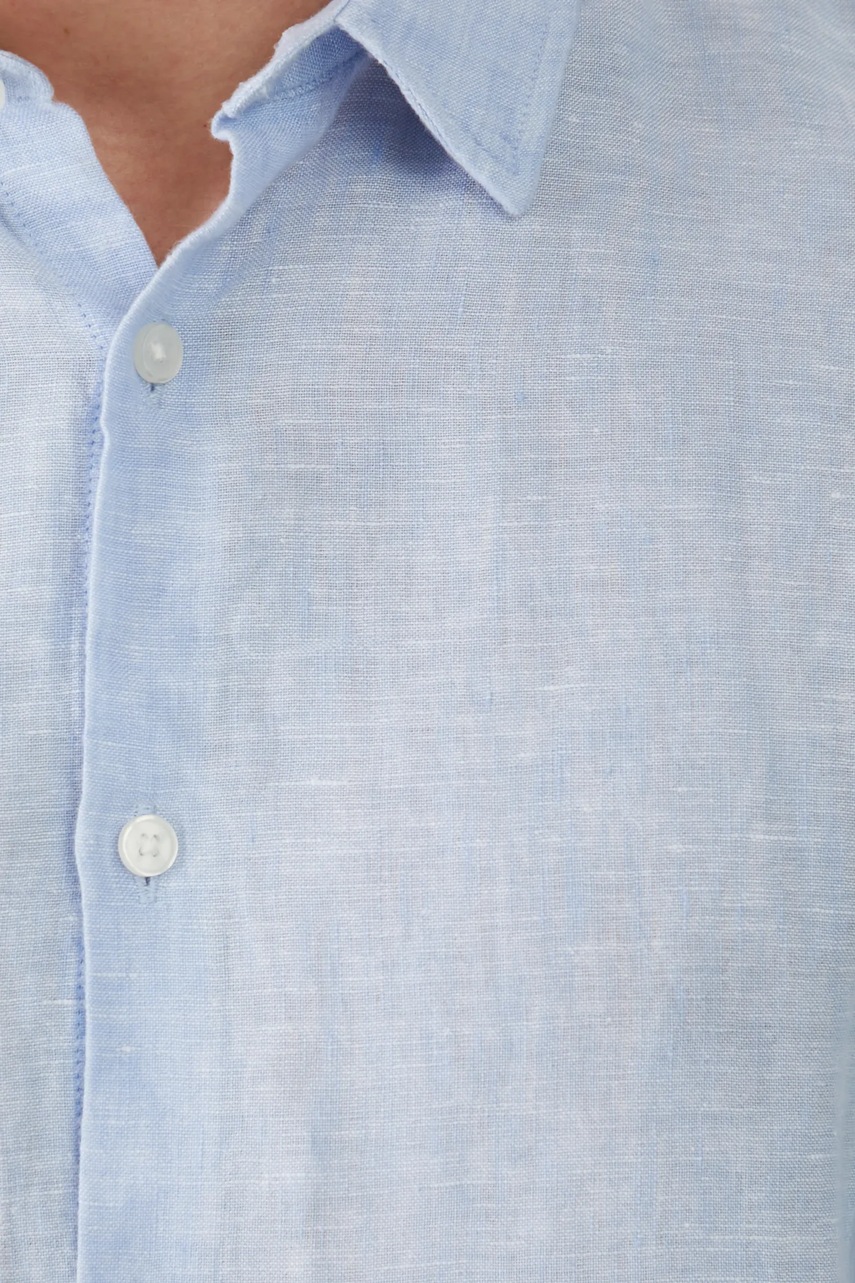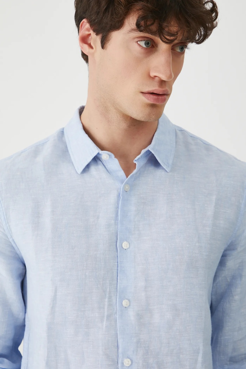 Medicine koszula lniana męska kolor niebieski slim z kołnierzykiem klasycznym