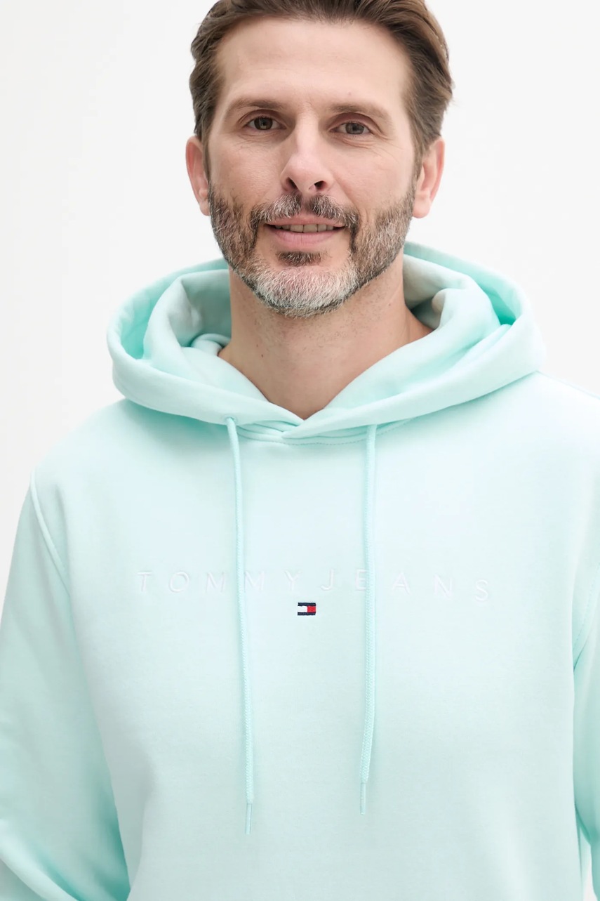 Tommy Jeans bluza męska kolor turkusowy z kapturem z nadrukiem DM0DM20746