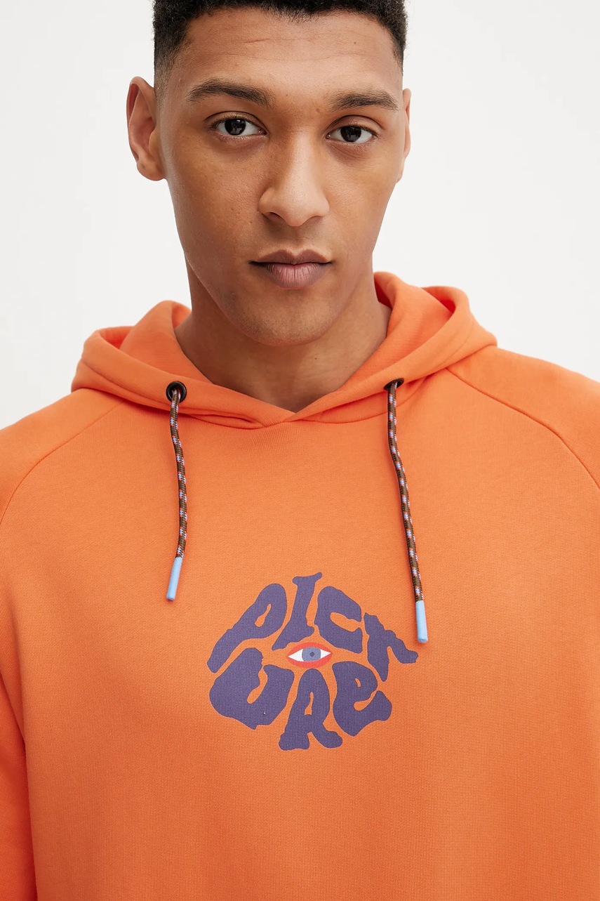 Picture bluza bawełniana Thru Eye męska kolor pomarańczowy z kapturem z nadrukiem MSW0467