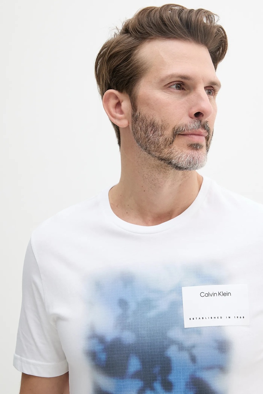 Calvin Klein t-shirt bawełniany męski kolor biały z nadrukiem K10K114157