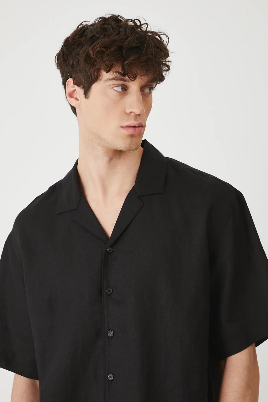 Medicine koszula lniana męska kolor czarny relaxed