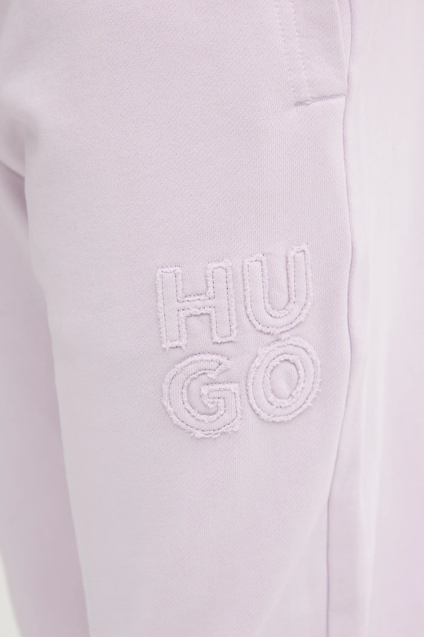 HUGO spodnie dresowe bawełniane męskie kolor fioletowy z aplikacją 50535287