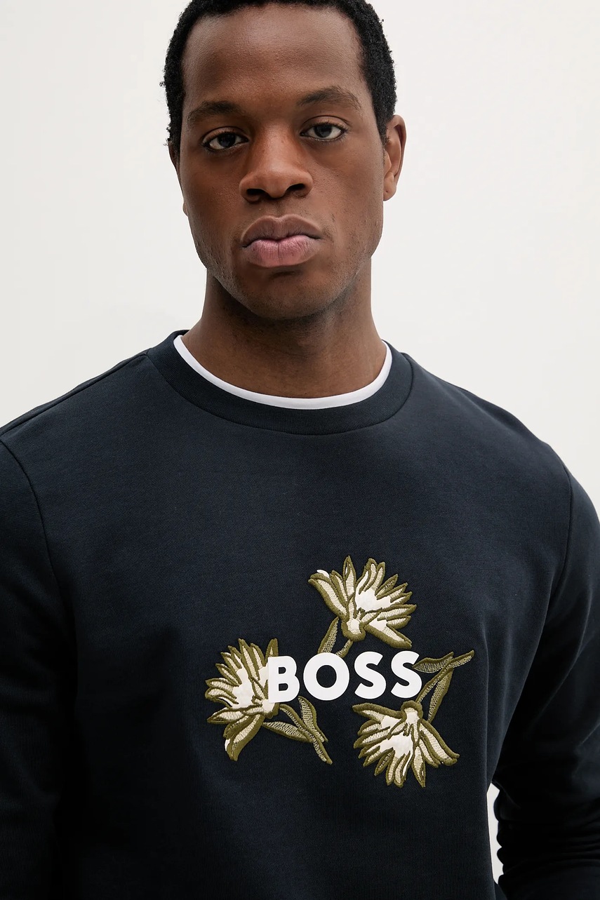 BOSS bluza bawełniana męska kolor granatowy z aplikacją 50536797