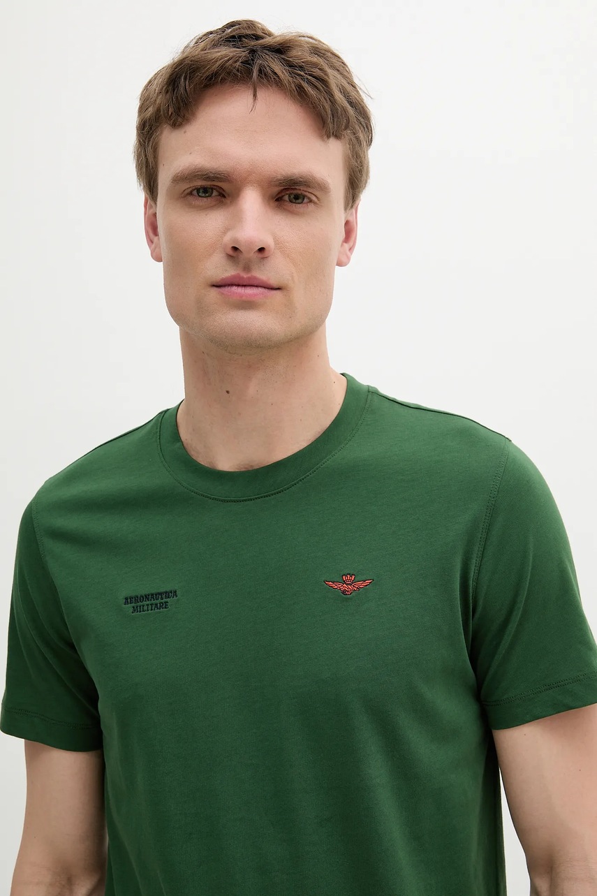 Aeronautica Militare t-shirt bawełniany męski kolor zielony z aplikacją TS2429J634