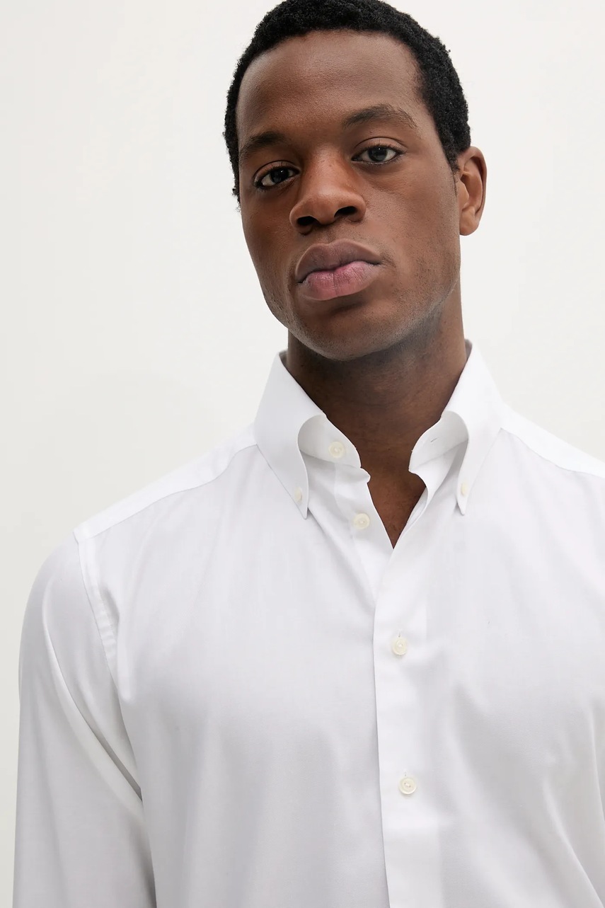 Eton koszula bawełniana męska kolor biały slim z kołnierzykiem button-down 100012808