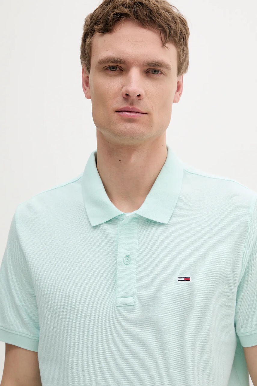 Tommy Jeans polo bawełniane kolor turkusowy gładki DM0DM20226