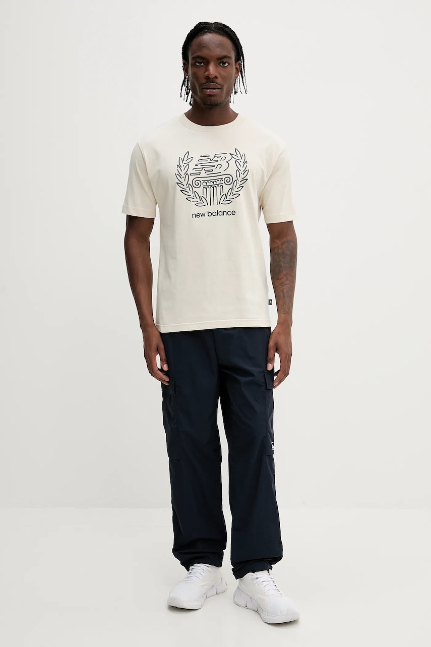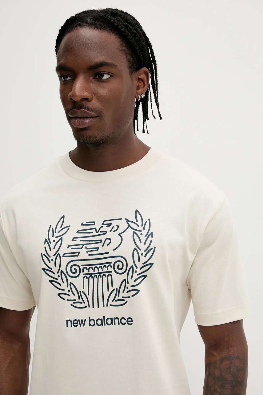 New Balance t-shirt bawełniany męski kolor beżowy z nadrukiem MT51974LIN